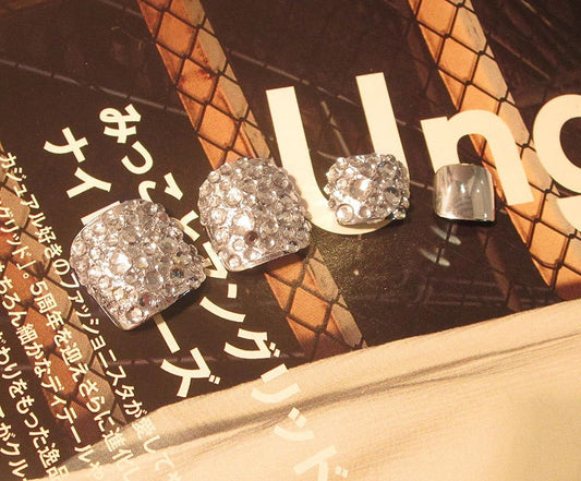 24 pcs summer Beauty Chic Toe Nails Metallic silver For Foot Nail High Quality with rhinestone Foot False Nail